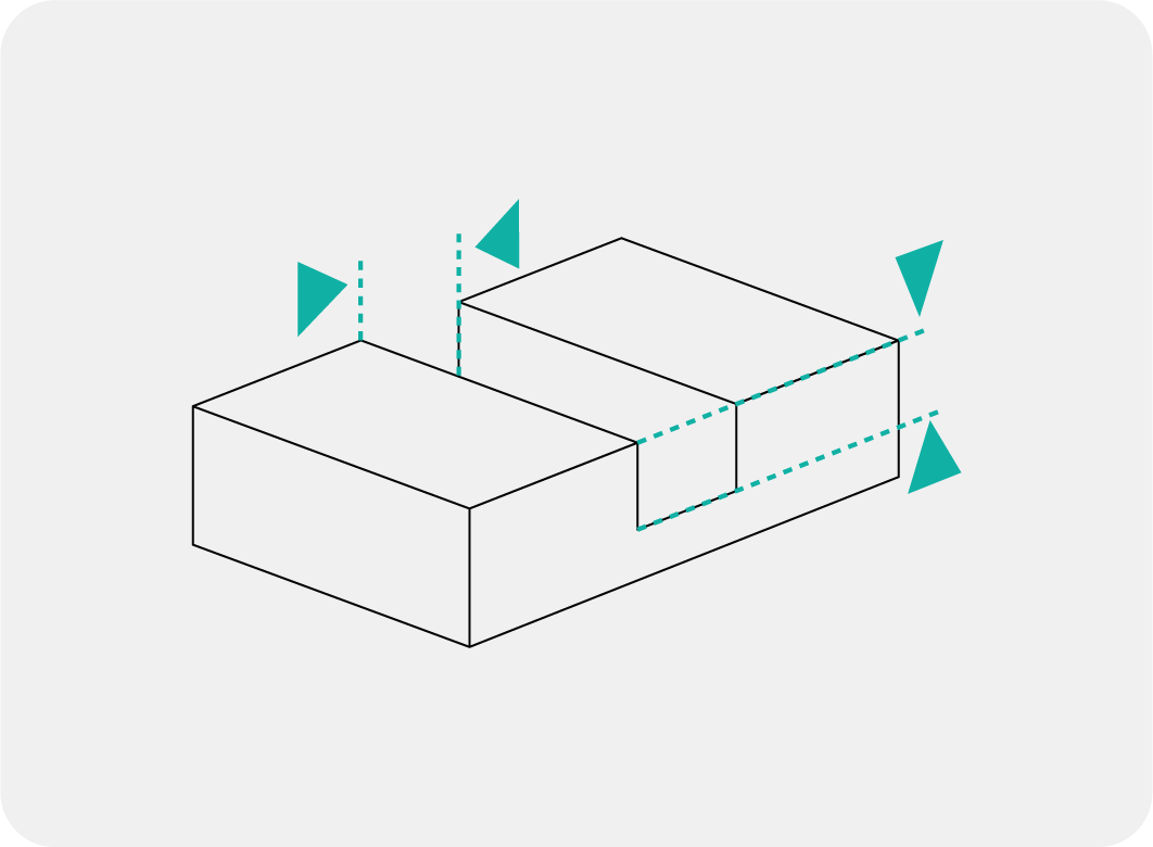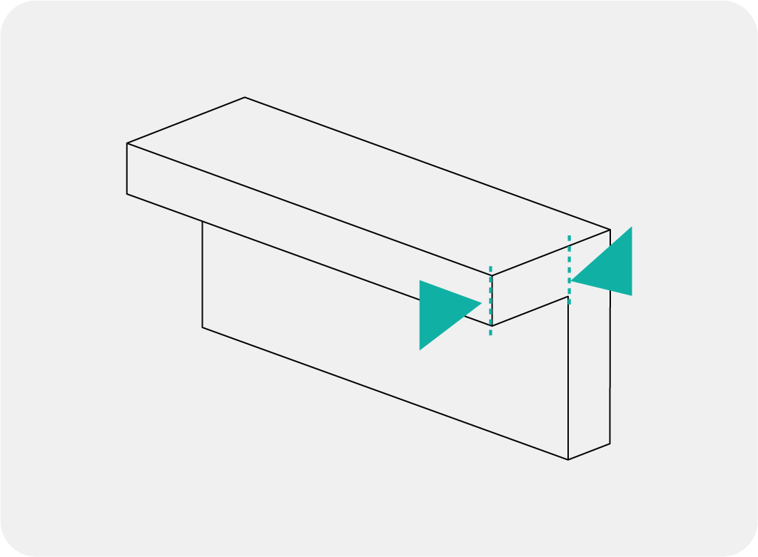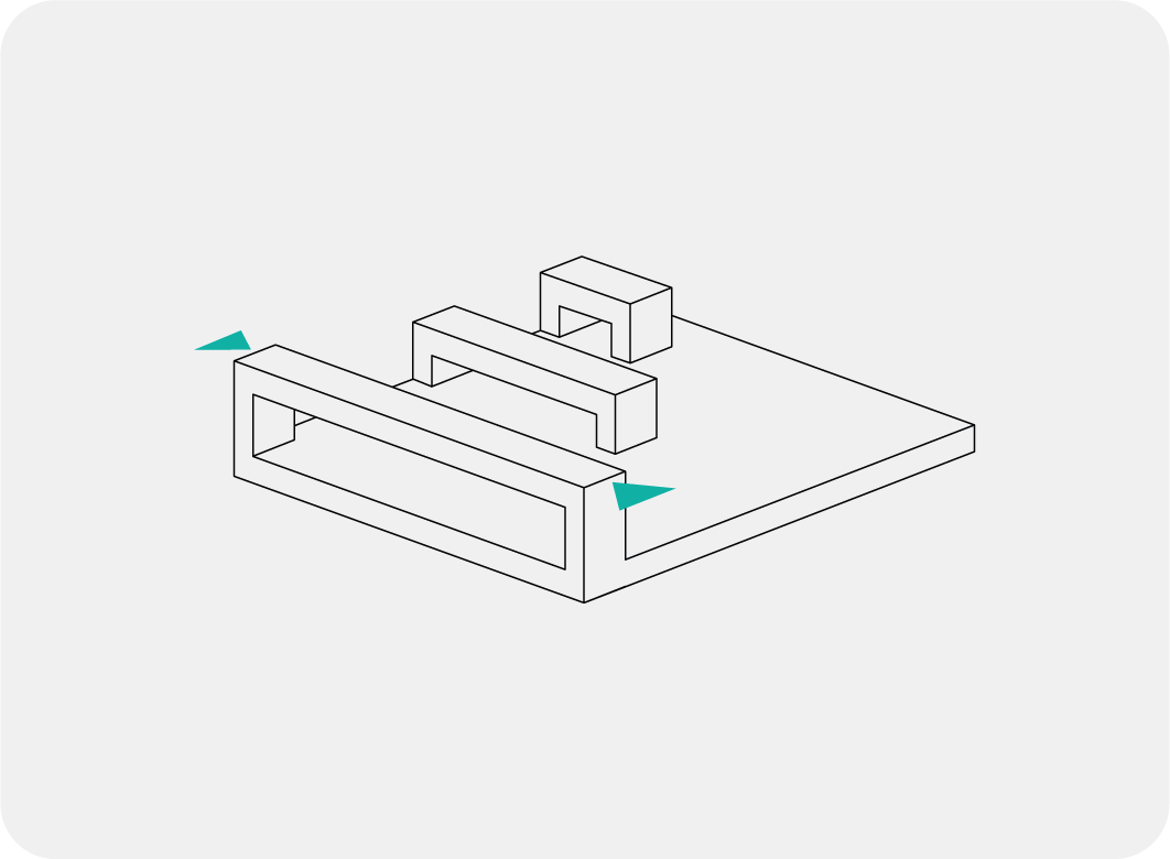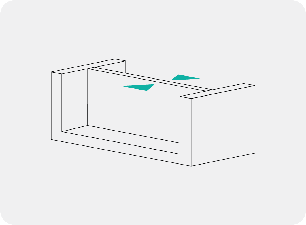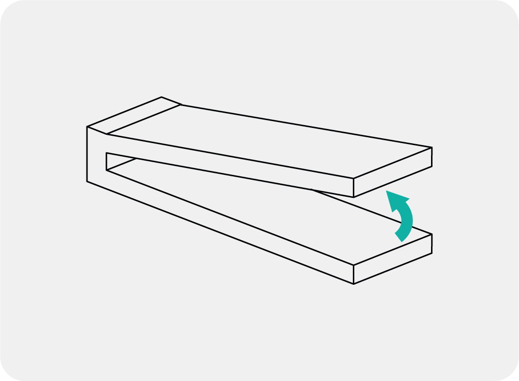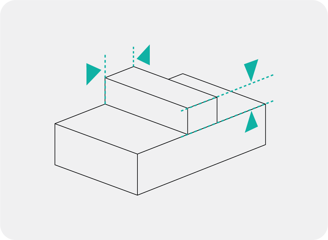 Per “sporgenza” si intende una parte del modello che sporge orizzontalmente in maniera parallela alla piattaforma di stampa. Sconsigliamo di stampare tali particolari senza supporti, perché gli strati non possono sostenerne la struttura. Le sporgenze orizzontali si deformano leggermente quando sono superiori a 1 mm, e questo difetto peggiora sempre più con l’aumentare della lunghezza della sporgenza.