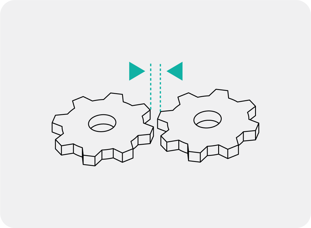 Il gioco è la distanza necessaria tra due parti in movimento di un modello (ad esempio, la distanza tra ingranaggi o giunti). Una distanza inferiore a 0,5 mm può causare la fusione delle parti.