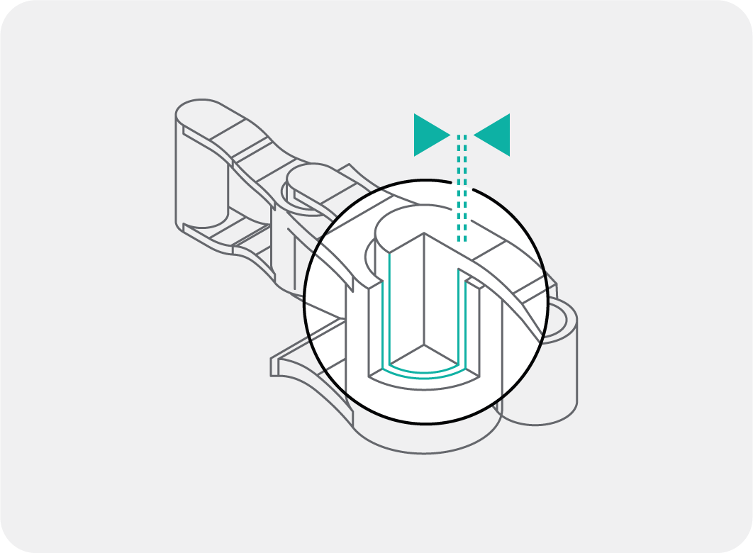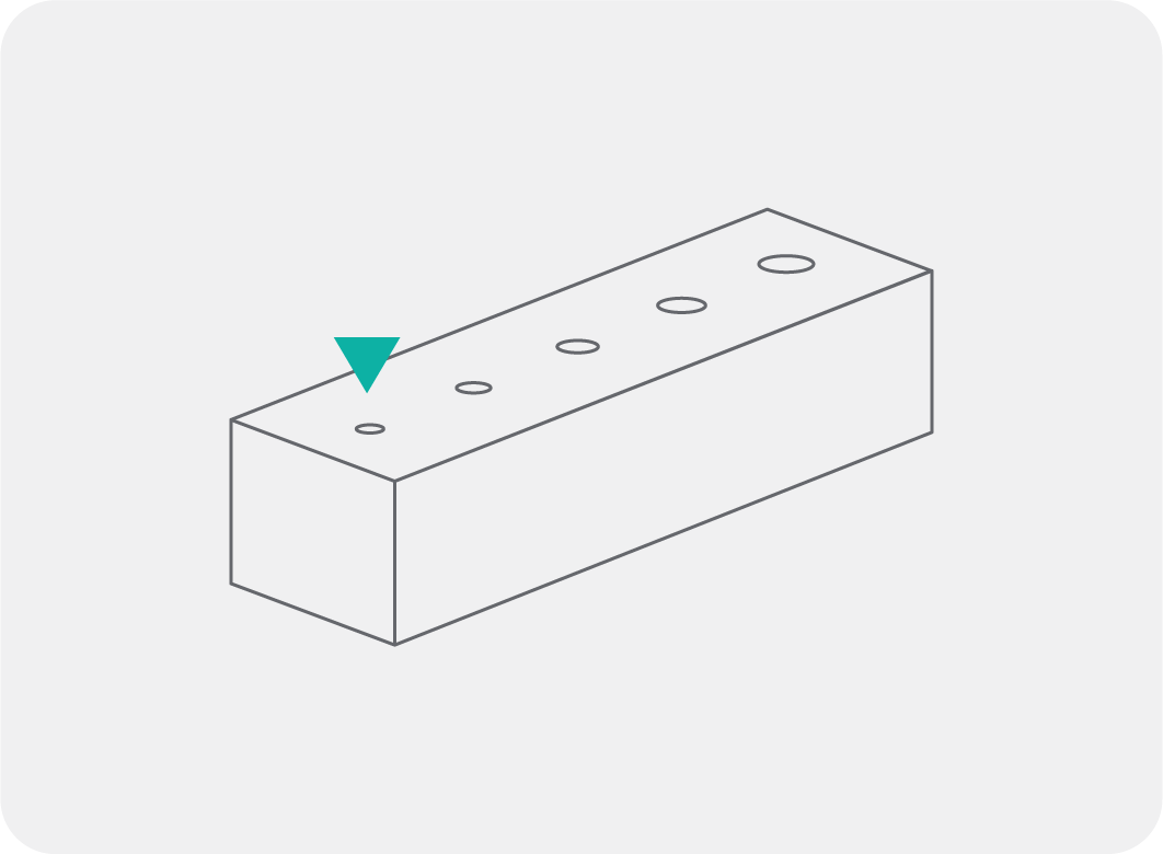 Le cavità chiuse rimangono piene di polvere non sinterizzata senza fori di fuga adeguati. Per ottenere i migliori risultati, prevedere almeno 2 fori di fuga dalla cavità di diametro pari o superiore a 3,5 mm.