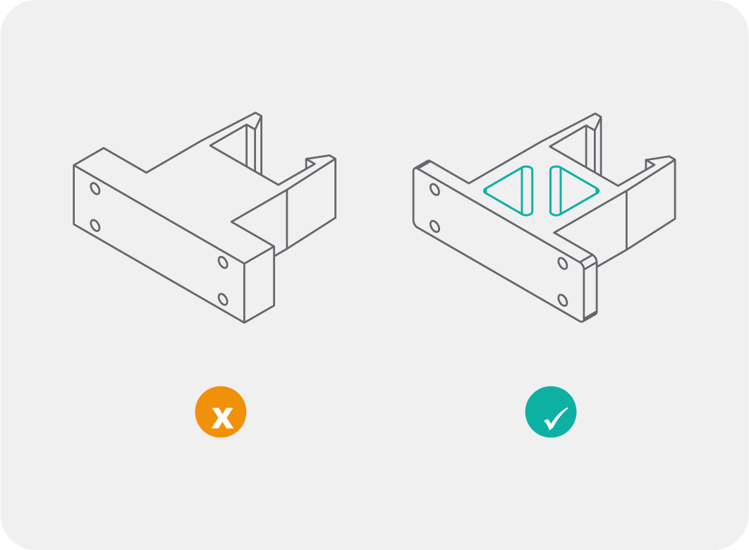 Le parti con un rapporto d'aspetto elevato sono soggette a deformazioni. Caratteristiche quali nervature o bozze possono ridurre il rischio di deformazione su sezioni estruse sottili come cantilever e fili.